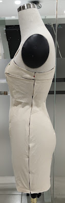 And later draping Calico fabric all over it to create the pattern. Mr Riza advised me to make the full bodycon dress first and then only add the curved line at the waist for the other inner tops.